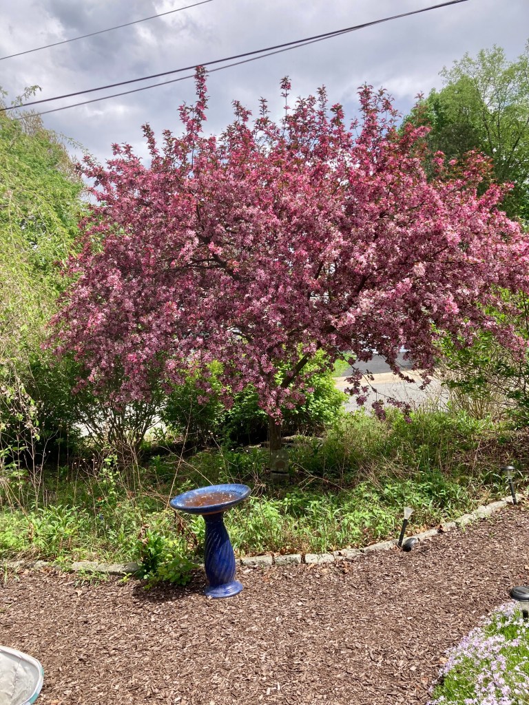 The centerpiece of the side yard is the crabapple tree that is also a memorial for Skip Stoughton (one of our shared favoritetrees).